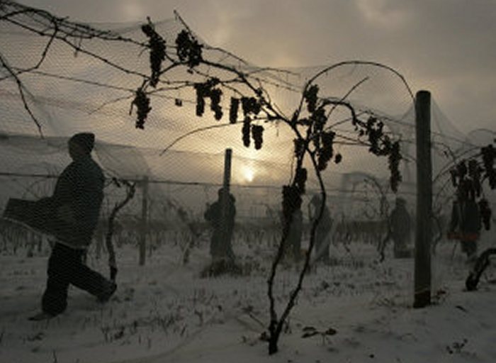 冬至將至,近日連南方也都順利入冬,而北方更是早已白雪紛紛。在這寒冬中,路上行人都大衣裹身,生怕被凜冽寒風(fēng)所傷,可就是在如此寒冷的環(huán)境下,在某些葡萄園中,嬌嫩的葡萄卻依然掛于枝頭,無懼冰雪,等待其第二次生命的綻放。而這些冰天雪地孕育出來的葡萄將用以釀造葡萄酒中的“冰美人”——冰酒